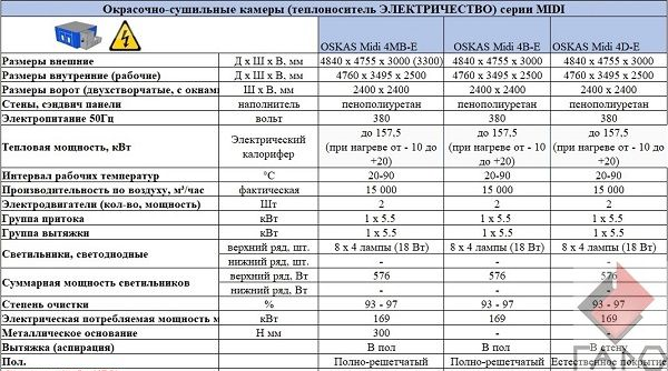 Не зависимо от исполнения, покрасочная камера МИНИ-MIDI снабжается двумя электромоторами, потребляемой мощностью 8,4 кВт.